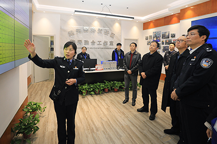 市委政法委副书记曹谦荣、政治部主任印文华,江宁区委常委、政法委书记周育刚,江宁区副区长、公安分局局长刁品中陪同调研。