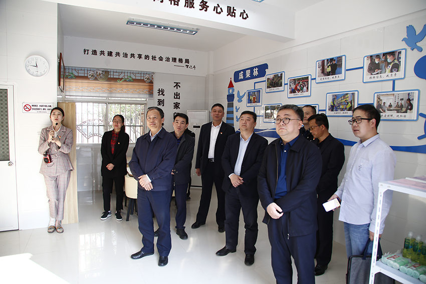 徐锦辉还实地考察了浦口区江浦街道求雨山社区网格疫情防控工作、永宁街道东葛社区“1+3+N”网格多元共治体系、永宁街道人民来访接待中心和大联勤网格化治理指挥中心,听取疫情期间网格员走访摸排情况,询问政法网格员分配数量,观摩了网格化治理运行平台,深入了解基层社会治理情况。徐锦辉指出,要深入总结“大联勤”、疫情防控等经验,积极探索新思路、新机制、新举措,完善基层共建共治共享格局,进一步提升网格化治理质效。