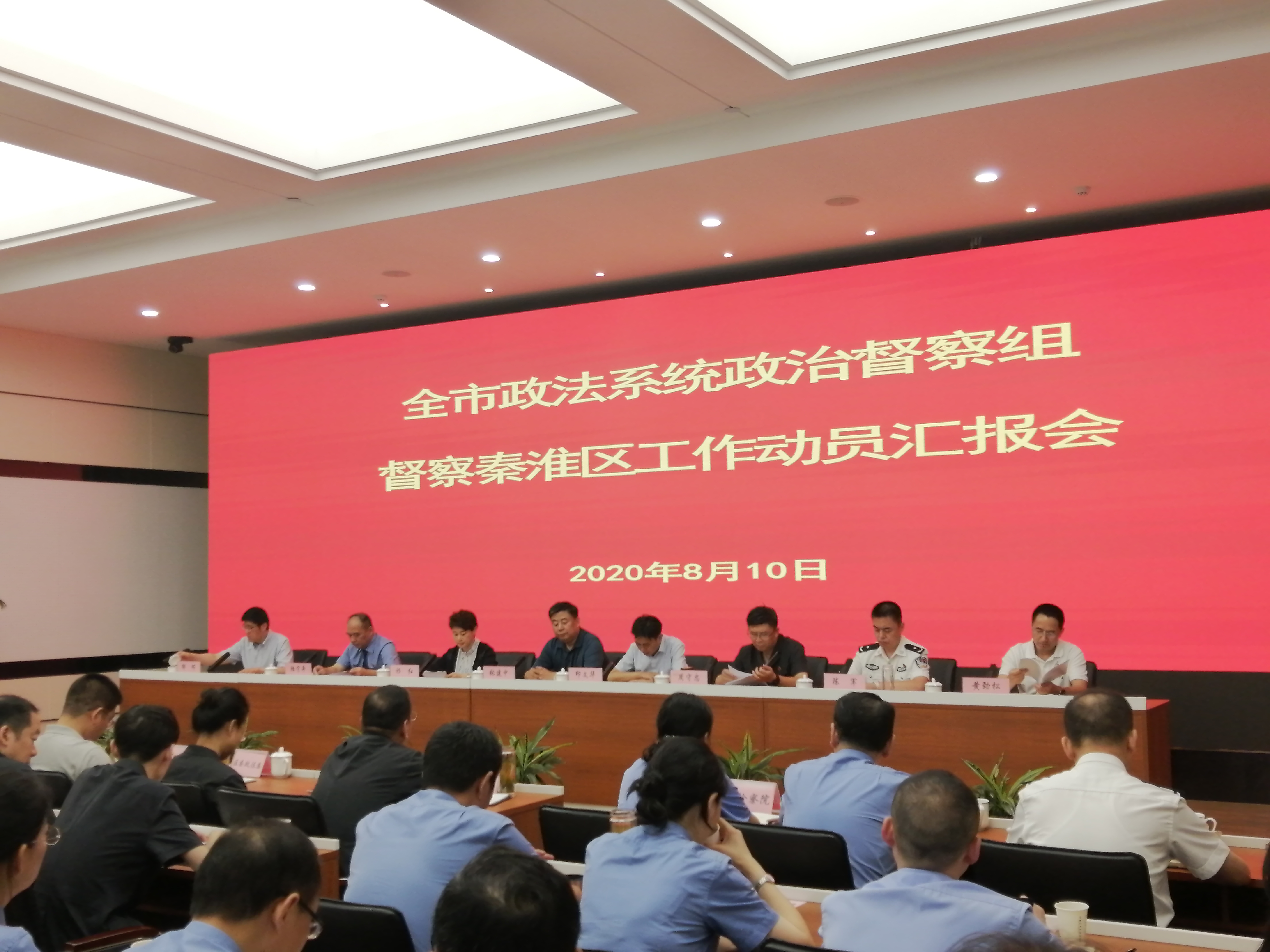 8月10日上午,全市政法系统政治督察组督察秦淮区工作动员汇报会在秦淮区综治中心召开。市纪委监委驻市委政法委纪检组组长张建中,市委政法委政治部主任、督察组组长印文华及督察组全体成员出席会议,秦淮区政法系统全体领导班子成员、部分中层干部共140余人参加会议。