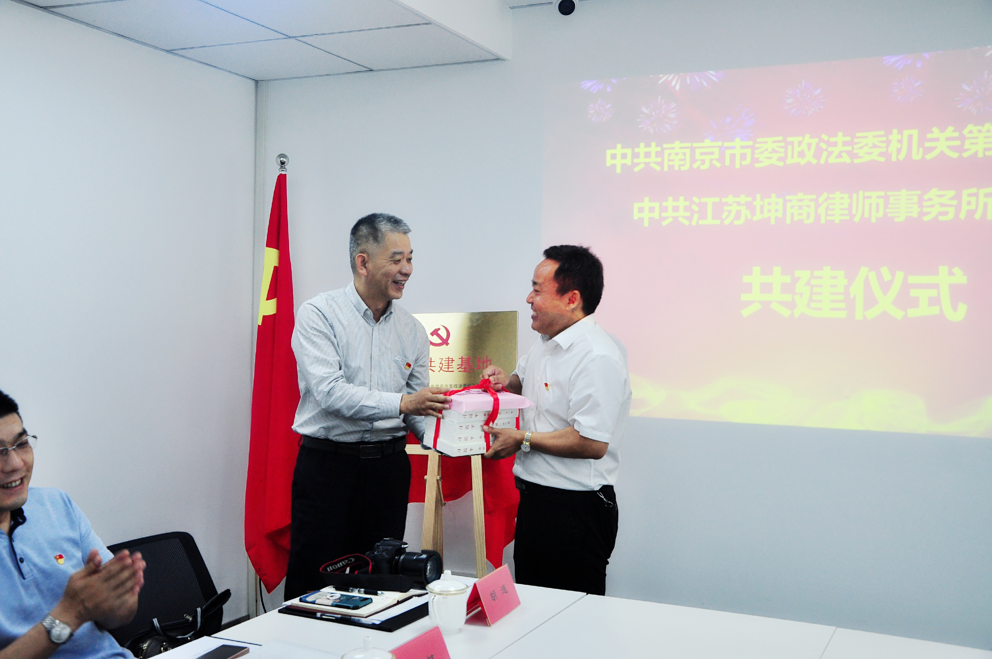 9月27日,市委政法委机关党委第一党支部与浦口区司法局党总支坤商律师事务所党支部开展“结对共建”活动。市委政法委副书记李永才、坤商律师事务所主任邱飞参加活动,并共同为“支部共建基地”揭牌。