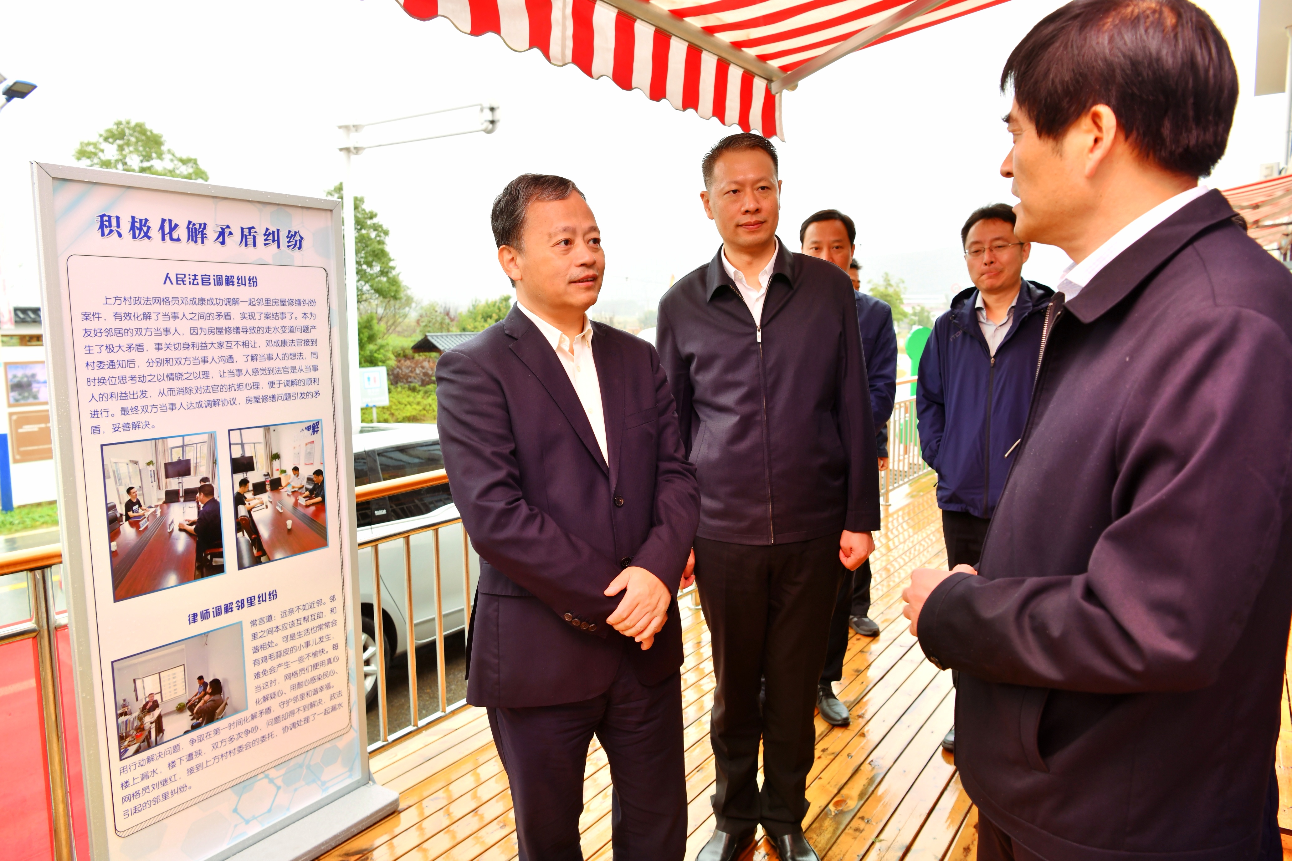 徐锦辉现场观摩了石湫街道网格化社会服务管理中心“智慧石湫”系统演示,详细了解巡回法庭工作开展情况;听取了上方社区全国乡村治理示范村创建情况汇报。随后,徐锦辉参加了溧水区社会矛盾纠纷调处化解中心揭牌仪式,并为中心揭牌。在座谈会上,徐锦辉听取了溧水区社会治理体系和治理能力现代化工作情况汇报。
