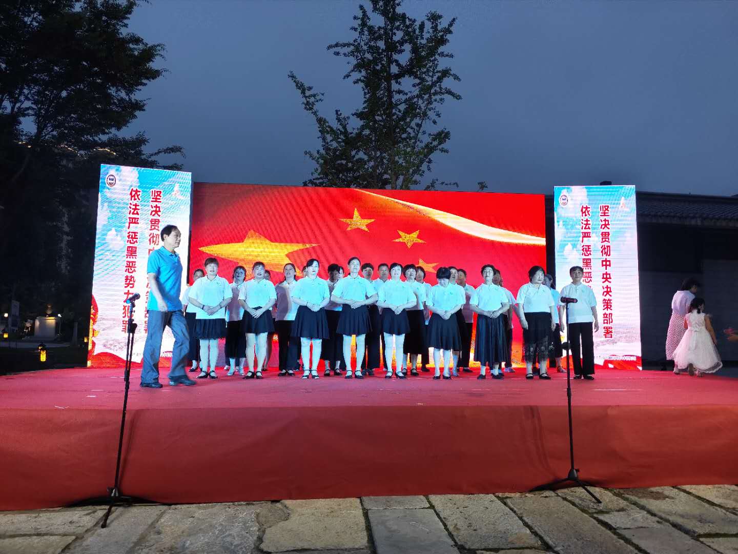 活动在《我和我的祖国》歌声中拉开了序幕,演出有以歌舞,法治情景剧,魔术等,内容丰富,精彩纷呈。现场还通过播放视频和标语、有奖知识竞答等形式开展扫黑除恶、国家安全宣传。通过开展此次活动密切了与基层群众的联系,提升了党建工作效应。