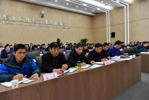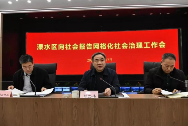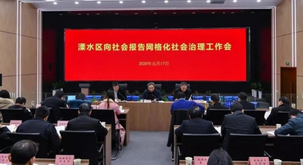 会上,大家观看全区网格化社会治理工作宣传片,区智慧办人员演示介绍了社会治理大联动平台。区委政法委就2019年全区创新网格化社会治理机制工作从以下5个方面做简要汇报。市委政法委领导范荣平简要介绍了全市网格化社会治理工作的情况,高度肯定了溧水网格化社会治理取得的成绩,就2020溧水网格工作提出希望。 最后,邰伦浩就做好全区创新网格化社会治理机制工作提出: 2019,创新网格化社会治理机制工作成效明显。包括网格党建引领取得新成效、智慧城市建设形成新样板、重点工作任务实现新突破以及网格工作队伍展现新风貌; 2020,创新网格化社会治理机制工作充满希望。重点做好3个方面工作: 聚焦智慧治理,全力推动“镇街吹哨、部门报到”机制创新走深走实;聚焦城乡治理,持续深化新时代“枫桥经验”在溧水实践;聚焦全民治理,倾力打造共建共治共享社会治理新格局。