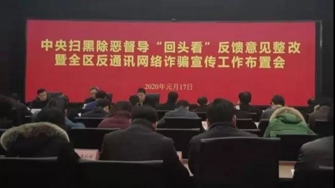 为扎实推进中央扫黑除恶第三轮督导“回头看”反馈意见整改落实,高标准做好全区反通讯网络诈骗宣传工作,1月17日,溧水区召开中央扫黑除恶第三轮督导“回头看”反馈意见整改暨全区反通讯网络诈骗宣传工作部署会议。