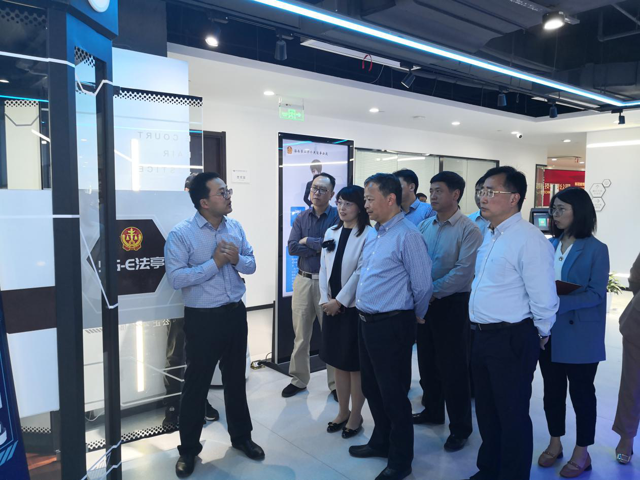 在软件谷云密城,徐书记调研了我市“瞪羚”企业—南京铉盈网络科技有限公司,详细了解了“一站式诉讼服务中心”、24小时自主诉讼服务、非诉讼纠纷前置解决、远程不见面服务等产品研发情况,观看了智能材料管理系统、一体化协同调度平台、“5G—E”法亭、远程民商事法庭等智能终端演示应用。
