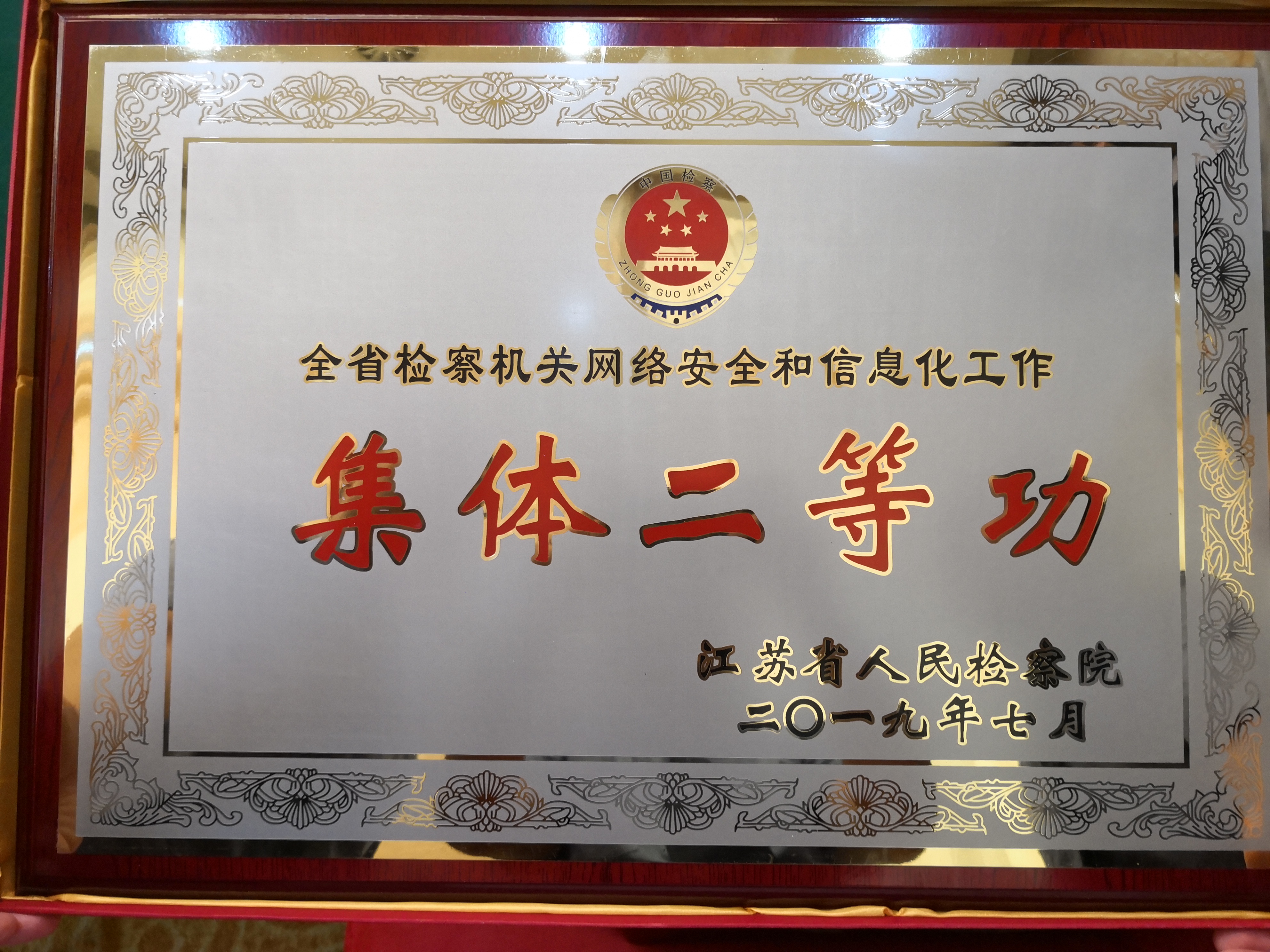 2019年7月30日,在第四次全省检察机关网络安全和信息化工作会上,雨花台区检察院因扎实推进刑事办案智能辅助系统盗窃罪模块试点工作,被江苏省检察院授予集体二等功,这是区检察院自1978年恢复重建以来首次被授予省级集体二等功,同时该院周朝阳等三名干警荣获个人三等功。