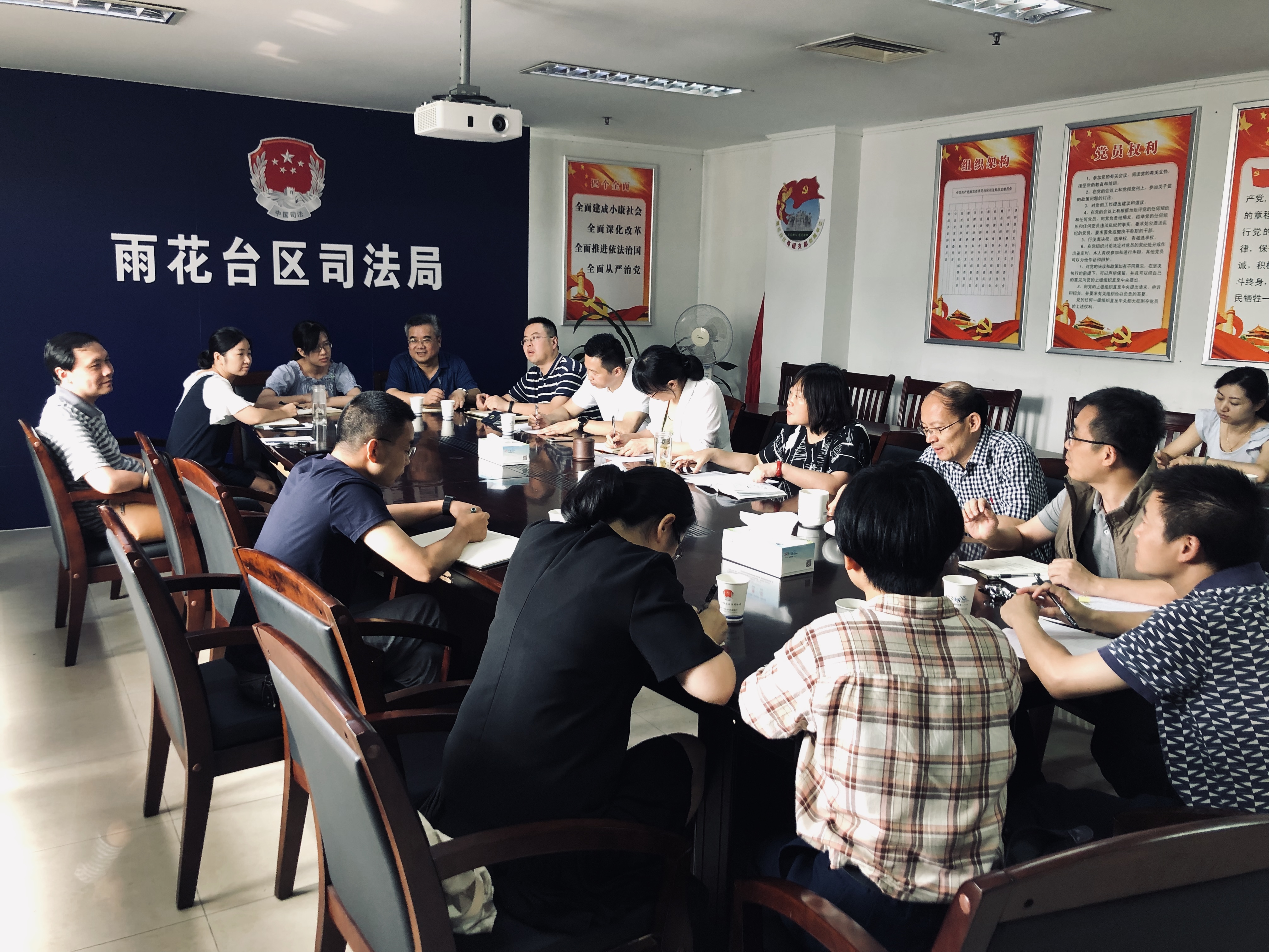 7月18日,雨花台区公职律师工作会议在区司法局会议室召开,13名公职律师全部参会,会议由司法局副局长魏红燕主持。会上介绍了全区公职律师工作运转情况,对《公职律师管理办法》做了重点解读。会议强调,公职律师要在法治雨花工作中充当生力军,在依法行政工作中走在前列,在各项工作中成为法治先锋,使公职律师这个新团队更有号召力、责任感、使命感和战斗力。