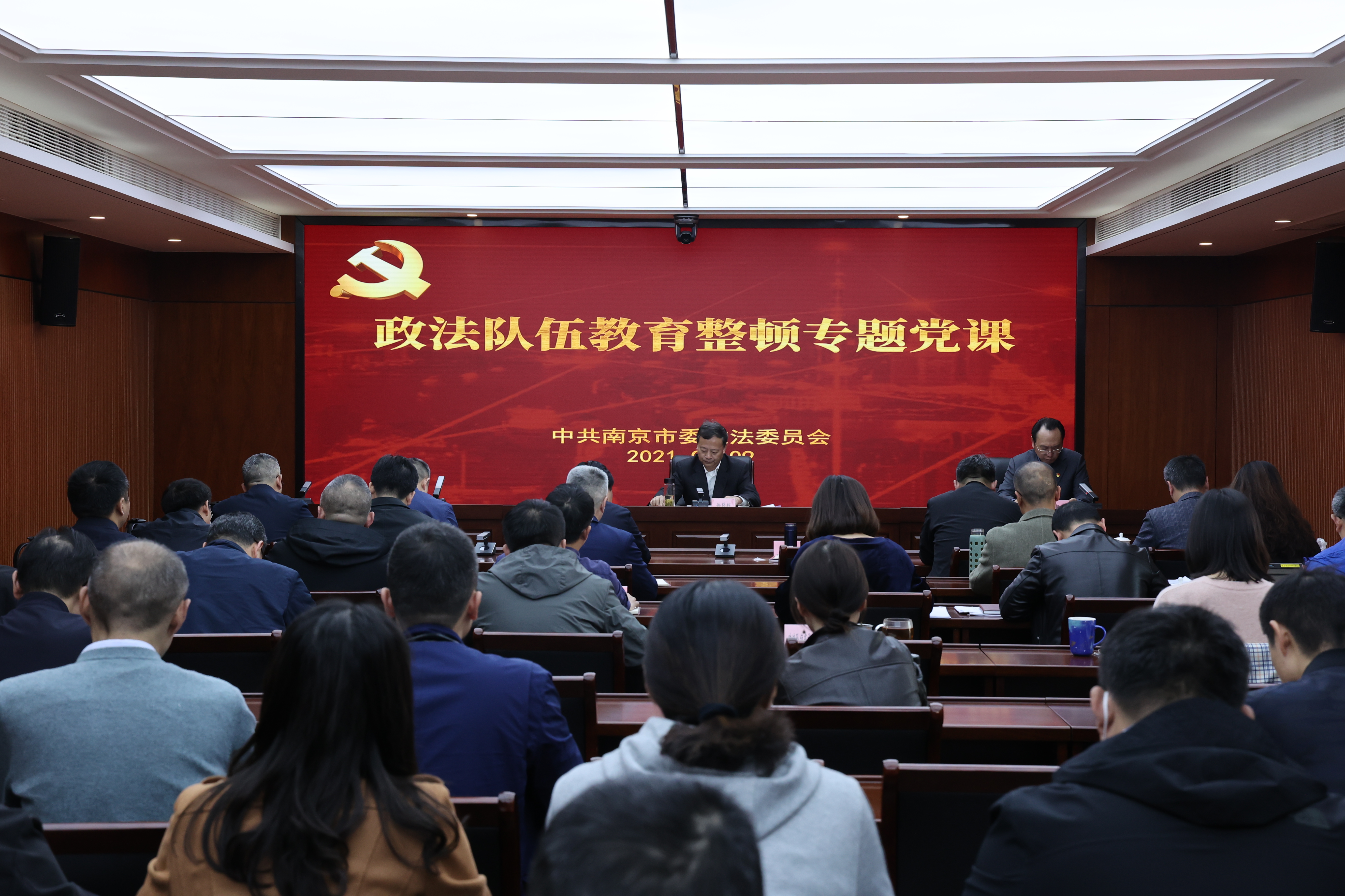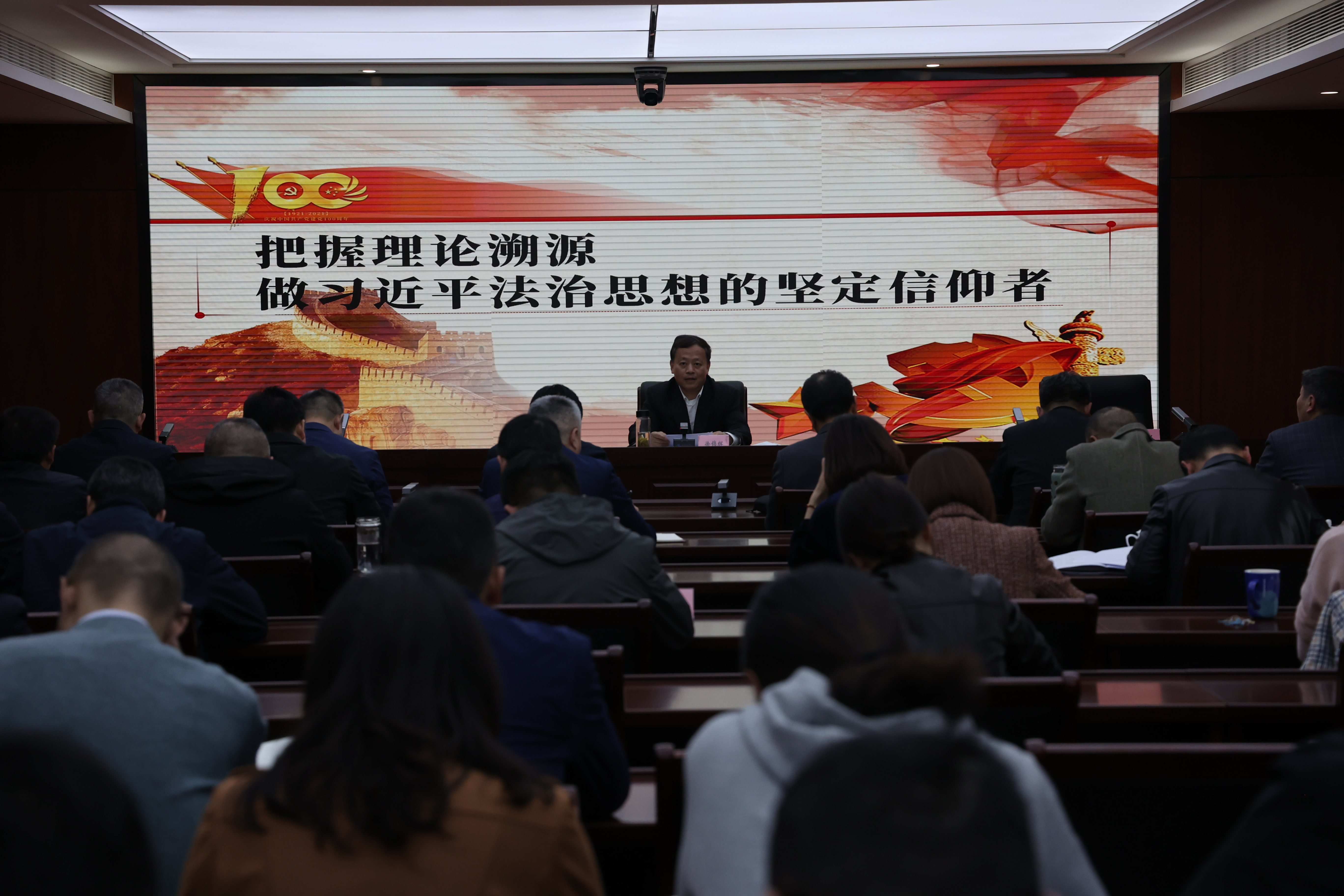 为深入推进政法队伍教育整顿工作走深走实,夯实政法干部思想根基,发挥“一把手”引学、带学、促学作用,4月9日下午,市委常委、政法委书记、市政法队伍教育整顿领导小组办公室主任徐锦辉围绕《深入践行习近平法治思想 全面提升党对政法工作的领导水平》,为全市政法委系统党员干部上专题党课。会议采取电视电话会议形式召开,市委政法委,江北新区综治局、各区委政法委全体党员干部,各街镇政法委员共七百余人参加党课学习。