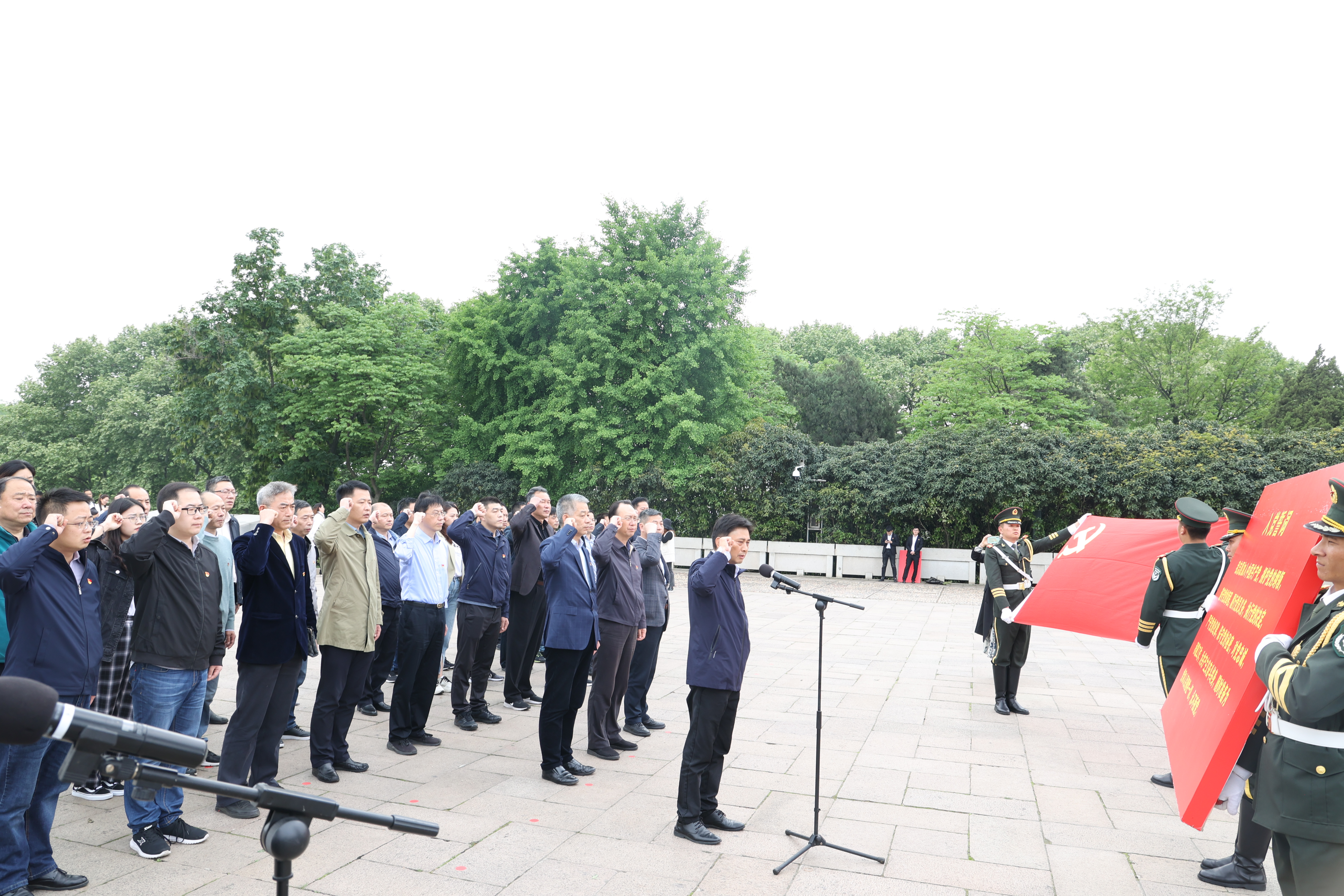 苍松下,翠柏前,全体党员干部来到高大雄伟的雨花台烈士纪念碑,向革命烈士敬献花圈,向英勇牺牲的烈士致以崇高敬意。